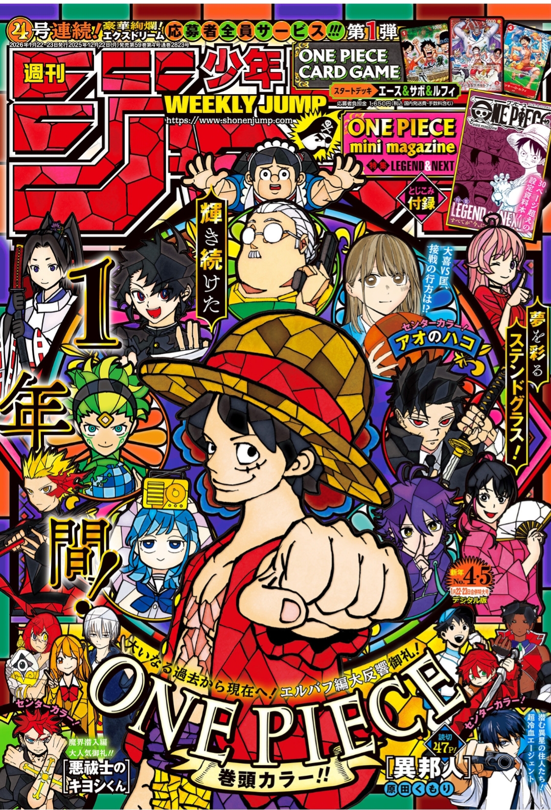 表紙巻頭カラーはジャンプキャラがステンドグラス調に描かれた集合絵。